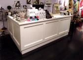 Para mostrar os seus produtos, considere colocar algumas prateleiras em frente ao balcão do caixa ou, caso você tenha um balcão grande e que gera filas, coloque produtos no decorrer da fila para que seus clientes possam ficar olhando enquanto aguardam para efetuar o pagamento.