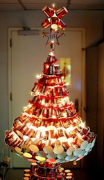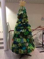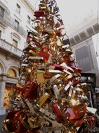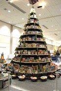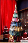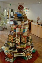 Foi o que fez a livraria da imagem abaixo: ela criou um pinheirinho feito completamente de livros.