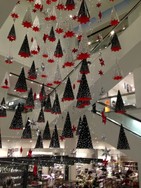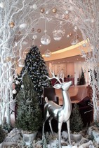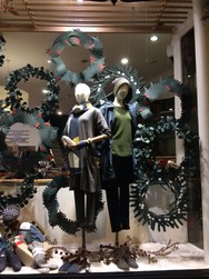 Essa é a ideia da imagem abaixo. Ao invés de usar diversos enfeites e elementos natalinos, esta loja preferiu usar um visual mais limpo, apostando somente em um elemento.