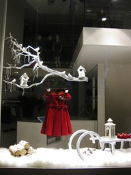 Presentinhos caindo do céu, esta é a ideia desta dica. Faça presentes com as caixas que você tem aí no estoque da sua loja, ou mesmo, compre caixinhas de variados tamanhos e, depois de embalar elas, pendure na vitrine. Você pode ver uma aplicação simples desta ideia na imagem abaixo.