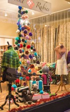 Além de caixinhas de presente você também pode pendurar outros enfeites de Natal, ou mesmo, produtos da sua loja enfeitados com fitas que lembram a data.
