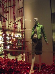 Foi o que fez a loja apresentada na imagem abaixo: investiu em uma decoração completamente vermelha, onde a única coisa com tons diferentes é justamente o produto que ela quer vender. Bem inteligente, não é?